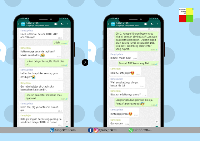 Jangan takut bin panik, bimbel privat aio Semarang merupakan bimbel Semarang terbaik yang siap menemani liburanmu dengan persiapan UTBK 2021. Gratis biaya pendaftaran, hubungi https://wa.me/62816853042.